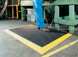 Vynagrip Plus darba drošības paklāji ir pieejami ar papildu dzeltenajām malām, lai atzīmētu maršrutus un norobežotu apgabalus.