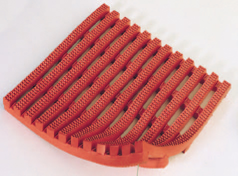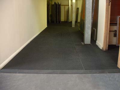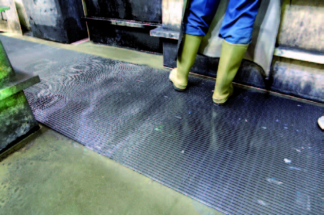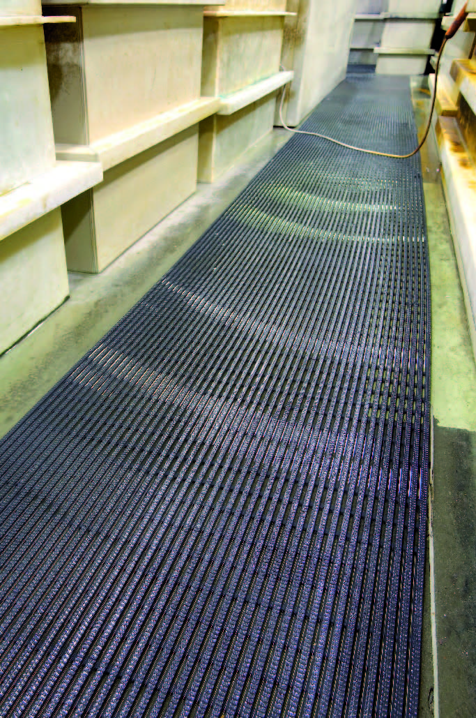 Atvērtā režģa dizains nodrošina izšļakstījumu un netīrumu izkrišanu. Nodrošina neslīdošu stāvošu virsmu.