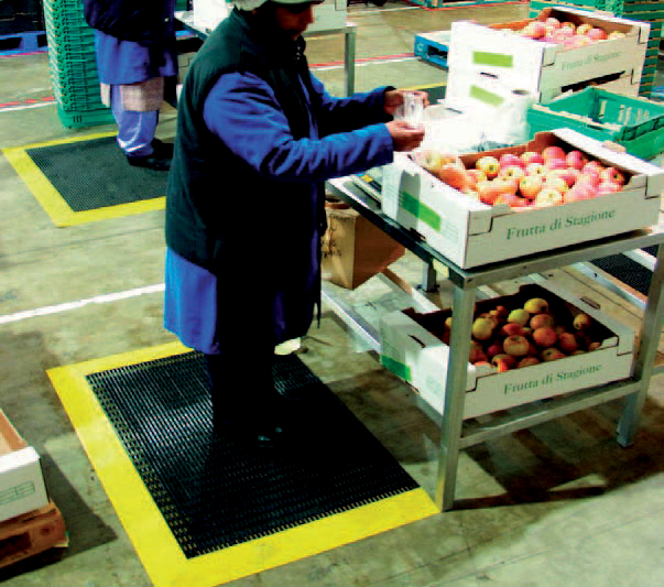 Paklājs ir īpaši izstrādāts, lai nodrošinātu ērtu un neslīdošu virsmu, kas samazinās kāju sasprindzinājumu un nogurumu, vienlaikus uzlabojot produktivitāti.